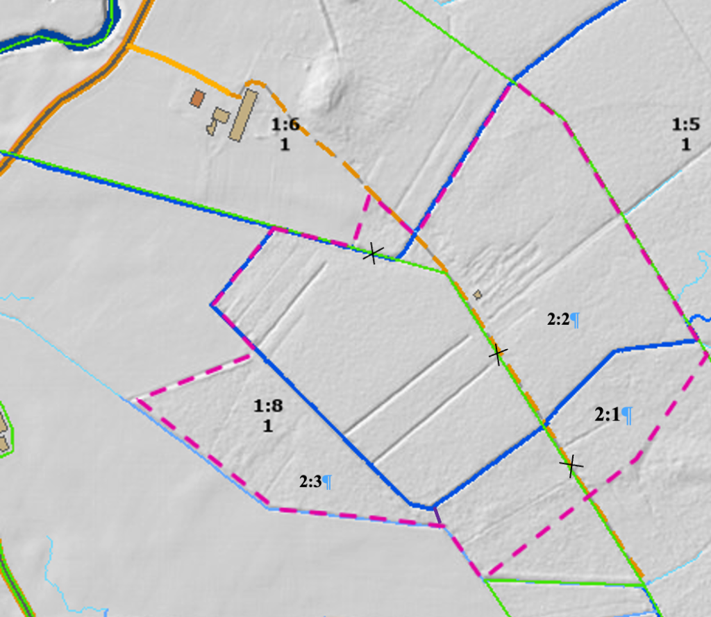 Vattendragen består av rätade bäckar i torvmark. Jordarten under torven är sannolikt sand, likt den som nämndes för område 1. Som syns på kartan ovan har rätt omfattande dikning skett mellan de vattenförande dikena. Man ser även en sannolik torvbrytning. Vid fältbesöket hade det regnat en längre period, men trots det vad det ingen vattenföring i dessa ”extradiken”. Troligt är att marken dränerar sig själv rätt så bra genom sanden.
