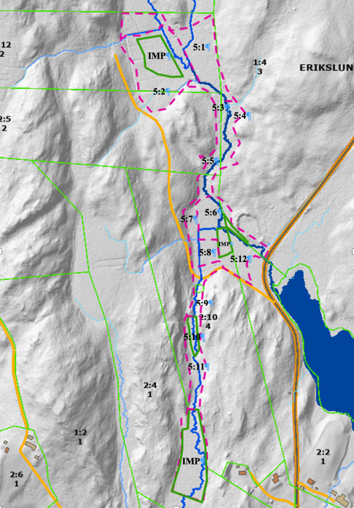 Område 5 – Vattendrag som avvattnar till Kalvsjön via Rödasjön på fastigheterna Rösarp 2:10, Rösarp 2:5, Rösarp 2:12 samt Erikslund 1:4